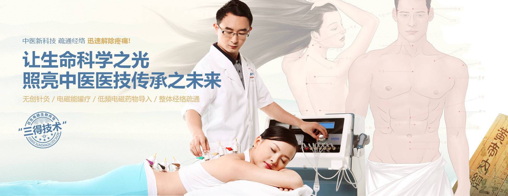 “三得技術(shù)”基于中醫(yī)“通則不痛,痛則不通”的理論,通過(guò)對(duì)經(jīng)絡(luò)穴位或身體相關(guān)臟腑部位在施加電磁能刺激時(shí)的痛感表現(xiàn),以及“三得技術(shù)”獨(dú)創(chuàng)的電磁罐印圖譜,做出精準(zhǔn)的病灶診測(cè),為后續(xù)診斷作出科學(xué)的依據(jù)。