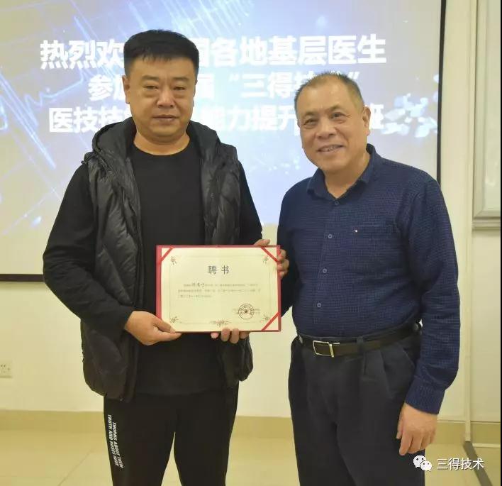 正式開班前,“三得技術(shù)”臨床案例委員會進行了一個簡單的受聘儀式。繼浙江的蘇美萍和江蘇的許翠香等優(yōu)秀基層醫(yī)生加入“三得技術(shù)”臨床案例委員會后,今天,又迎來了一位新成員,他是來自廣西的地總業(yè)務(wù)經(jīng)理陳志寧先生,幾個月以來,他利用學(xué)術(shù)老師下基層帶教基層醫(yī)生的機會,努力學(xué)習(xí)“三得技術(shù)”對各種慢病治療的技能,并利用他的特長在學(xué)員微信群無私地分享經(jīng)典案例,積極解答學(xué)員提出的各種問題,經(jīng)過案例委員會專家審核,一致同意聘請他成為委員會專員。