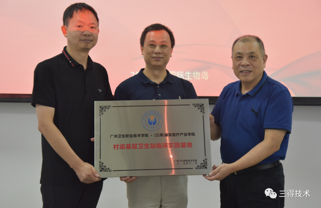 為落實《國務院辦公廳關于深化醫(yī)教協(xié)同進一步推進醫(yī)學教育改革與發(fā)展的意見》,提高醫(yī)療衛(wèi)生服務水平,深化醫(yī)藥衛(wèi)生體制改革,推進健康中國建設戰(zhàn)略,深入貫徹落實全國衛(wèi)生與健康大會精神和《健康中國“2030”規(guī)劃綱要》,進一步促進醫(yī)教協(xié)同發(fā)展,推進醫(yī)學教育改革,加強醫(yī)學人才培養(yǎng),使醫(yī)學生在畢業(yè)時能獲得全科醫(yī)學的基本知識及社區(qū)醫(yī)療的基本技能和體驗。2020年7月1日,正值中國共產(chǎn)黨建黨99周年這樣一個特殊的日子里,廣州康復醫(yī)療產(chǎn)業(yè)學院首個村級基層衛(wèi)生站臨床實踐基地在三得總部正式授牌成立。