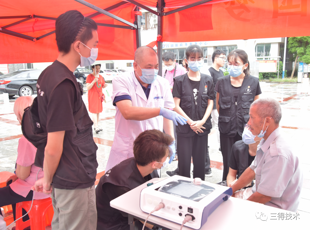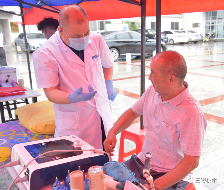 2020年8月5日,應(yīng)共青團(tuán)廣州衛(wèi)生職業(yè)技術(shù)學(xué)院委員會(huì)邀請(qǐng),廣東三得生物醫(yī)療技術(shù)研究院院長(zhǎng)、廣州(三得)康復(fù)醫(yī)療產(chǎn)業(yè)學(xué)院名譽(yù)院長(zhǎng)吳國(guó)憲親自帶領(lǐng)醫(yī)學(xué)團(tuán)隊(duì),參加在從化呂田鎮(zhèn)文化廣場(chǎng)舉辦的“博濟(jì)健康下鄉(xiāng)行,攜手共筑中國(guó)夢(mèng)”大學(xué)生暑期三下鄉(xiāng)義診社會(huì)實(shí)踐活動(dòng)?!叭眉夹g(shù)”安全、舒適、高效,受到基層老百姓點(diǎn)贊和歡迎。